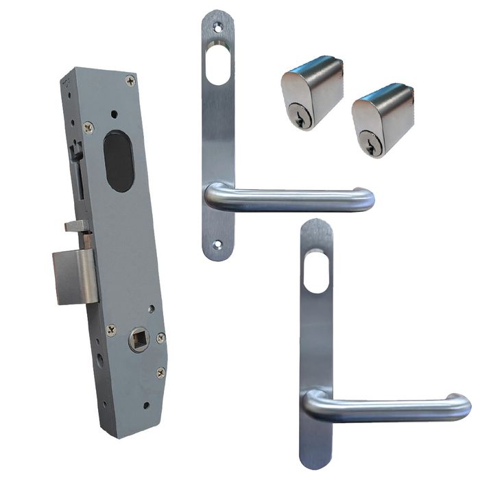 This is a Kit that contains a 23mm Backset Mortice Lock, Oval Cylinders and Suitable furniture for use in "Double Cylinder" configuration.