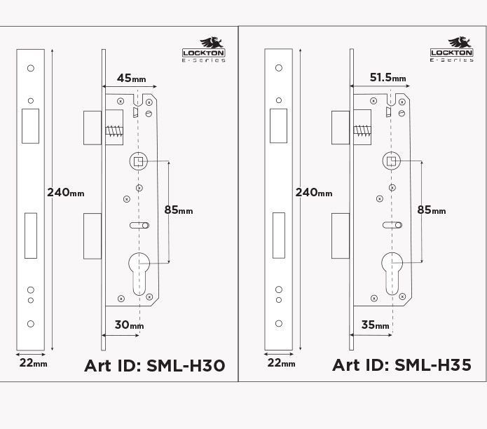 'E-Series' Euro (Smart) MORTICE LOCK (Hinged Door)