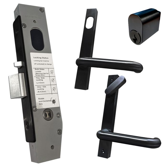 23mm Mortice Lock KIT5 (DISABILITY) - Inc. Lock, Furniture & Cylinder *Matte Black*
