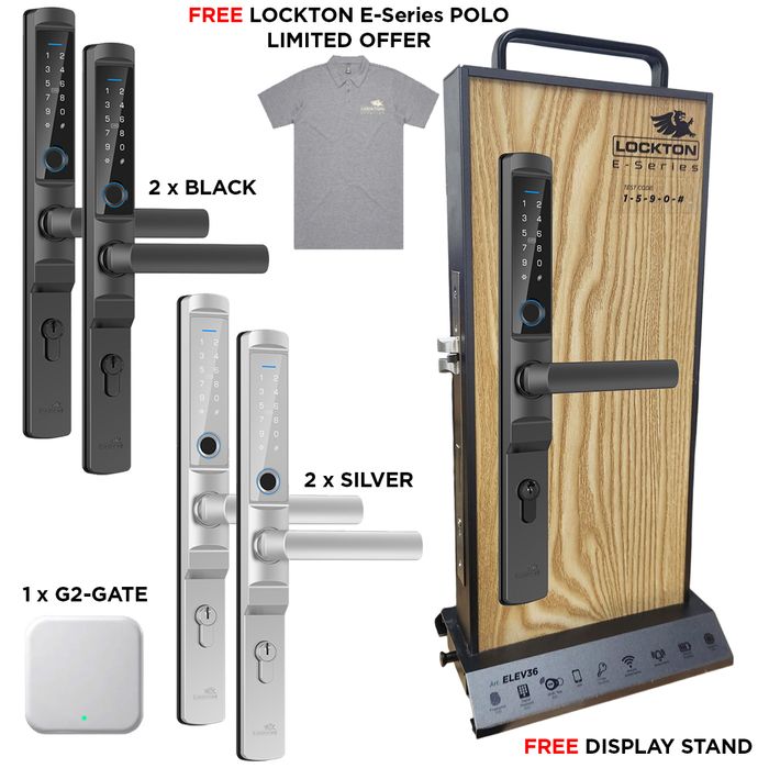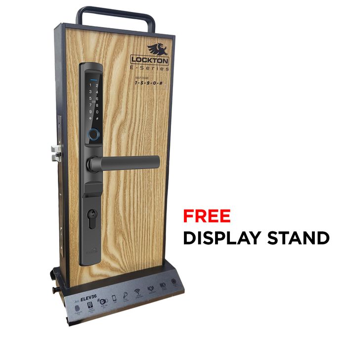 - 1 x LOCKTON 'E-Series' ELEV36 Dealer Display Stand, comes fitted with fully functioning ELEV36 Smart Door Lock on a stylish aluminium and timber display mount