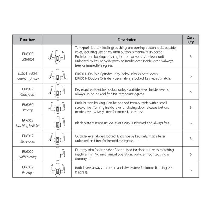 '6000 Series' LEVERSET - INSTITUTION SET (70mm B/Set)