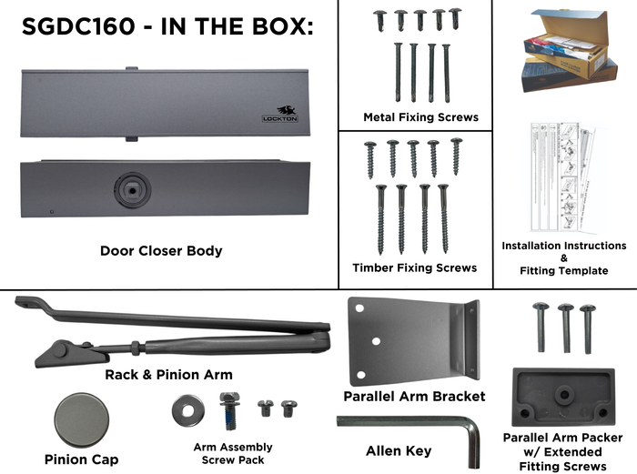 - Can be fitted with optional Hold Open Arm or Sliding Track Arm (please see RELATED PRODUCTS)