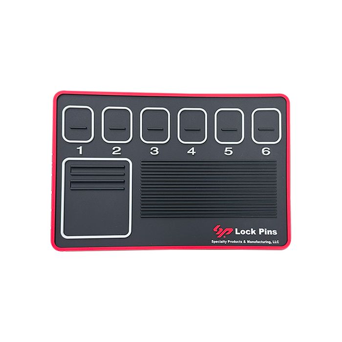 This high quality rubber pinning mat from SP LOCK PINS is a must have for any mobile locksmith. The mat comes with several raised sections and indents to help prevent pin loss and streamline the pinning job process.