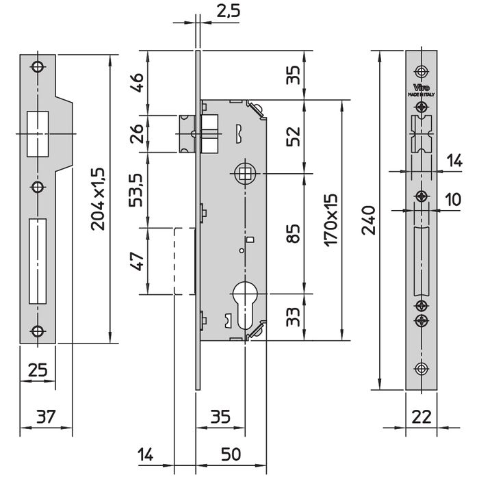 VIRO Art. 7435-36-2-9 Single Throw Euro Mortice Lock.