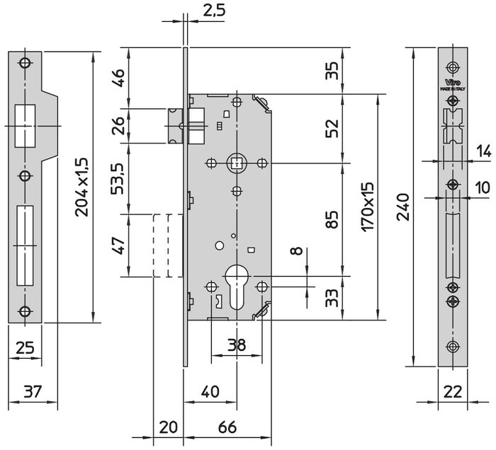 VIRO Art. 7435-40-2-9 Double Throw Euro Mortice Lock.