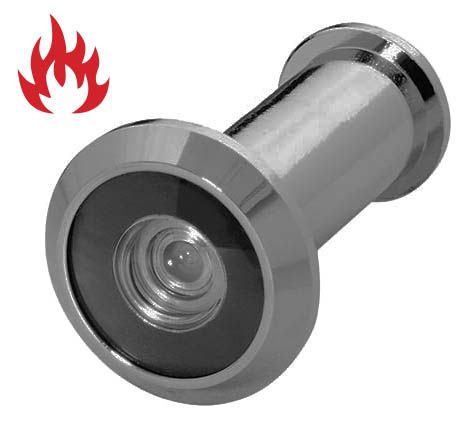 The PEDRET 'Super Viewer' 200° door viewer has a 2-hour Fire Rating. Featuring a solid Brass body, Nickel finish with special Fire resistant lenses and is suitable for door thickness between 35-60mm.