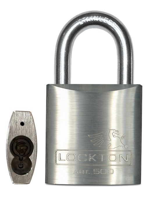 The LOCKTON Art. 500/50-SS-ALC 50mm Less Cylinder Padlock w/ Stainless Steel Shackle.