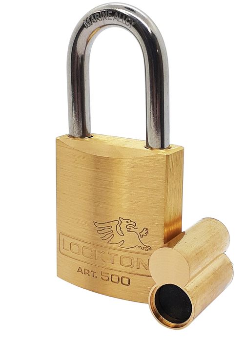 The LOCKTON Art. 500-LS/45-38SS-ALB 45mm Less Barrel Padlock w/ 38mm Long Stainless Steel Shackle.