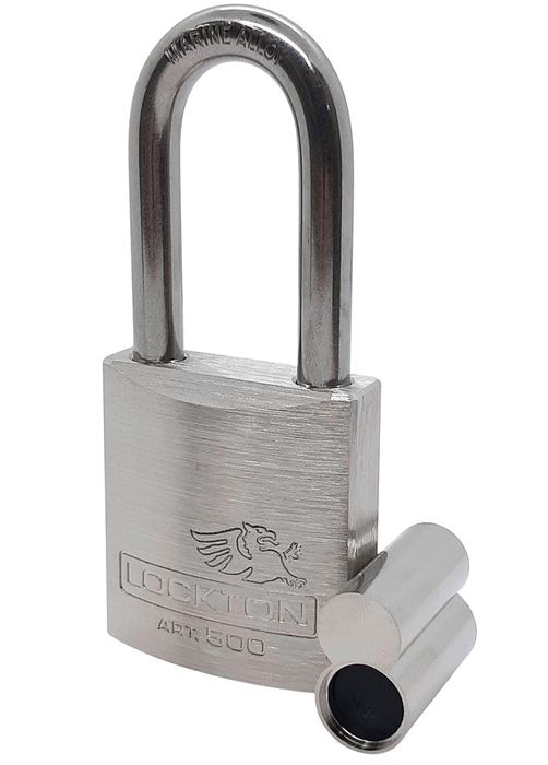 The LOCKTON Art. 500-LS/50-50SS-ALB 50mm Less Barrel Padlock w/ 50mm Long Stainless Steel Shackle.
