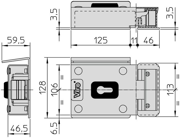 - Cylinder: configured for double or half profile cylinders (not supplied with lock)