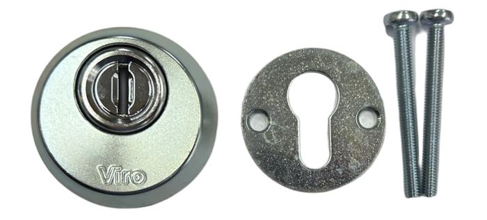 VIRO Art. 1-7918-0806 Security Escutcheon. This Escutcheon is designed for V06 and V90 Series Gate Locks to provide greater protection to both the lock body and cylinder (see RELATED PRODUCTS).