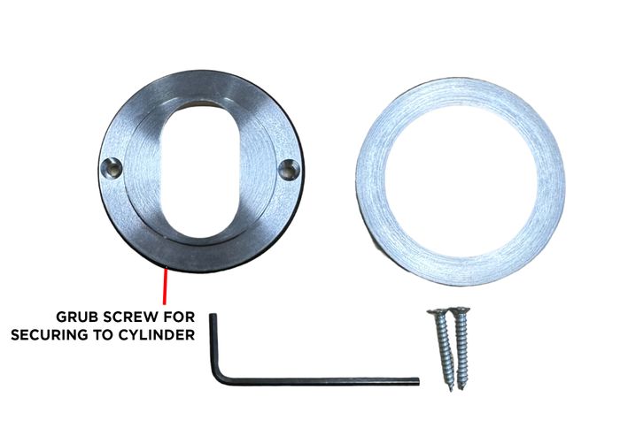 - Can be fitted either directly to timber door via fixing screws supplied with escutcheon or fitted to cylinder via integrated grub screw and Allen Key
