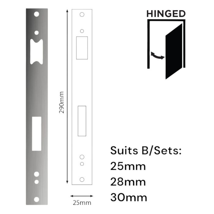 - Suits: 28 - 30mm Backset 'E-Series' Hinged Mortice Locks (See RELATED PRODUCTS)