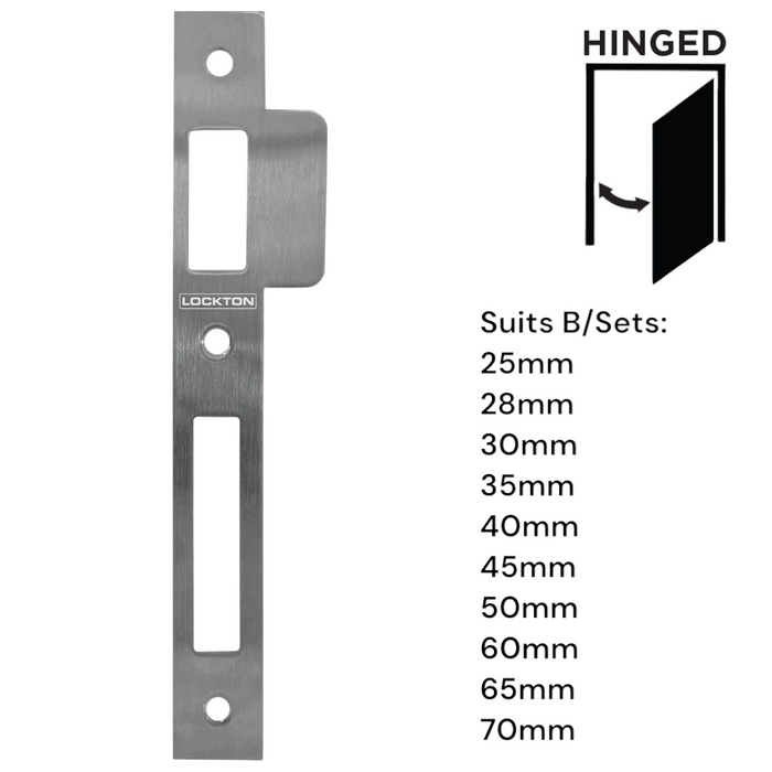 This Strike plate will suit any Hinged Door Mortice Lock in the 'E-Series' Smart Range (see RELATED PRODUCTS).