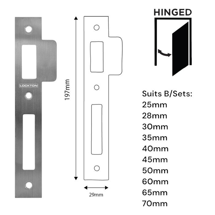 This Strike plate will suit any Hinged Door Mortice Lock in the 'E-Series' Smart Range (see RELATED PRODUCTS).