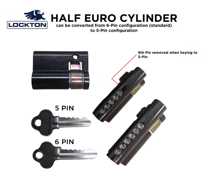LOCKTON 496-5-BLK, Half EURO fixed cam cylinders are a 6pin C4 cylinder, Suitable for use in fixed cam locks that require a Half EURO Fixed cam cylinder.
