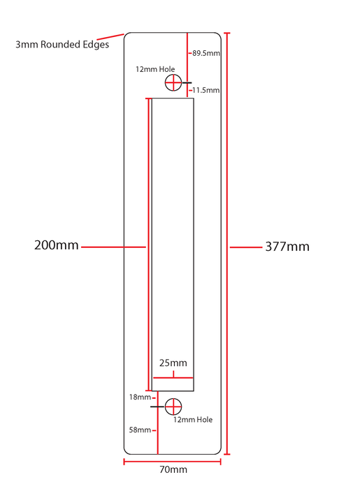 - Plate Dimensions: 377 x 70mm