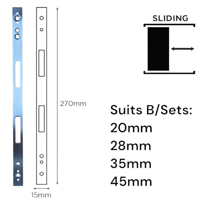 - Suits: 20 - 45mm Backset 'E-Series' Sliding Mortice Locks (See RELATED PRODUCTS)