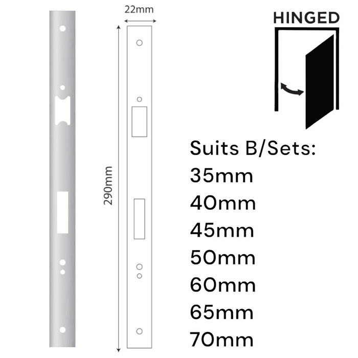 - Suits: 35 - 70mm Backset 'E-Series' Hinged Mortice Locks (See RELATED PRODUCTS)