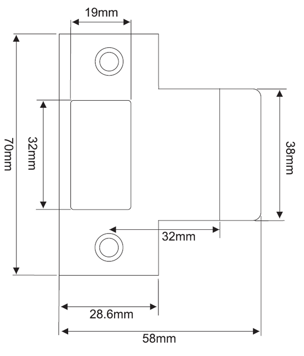 LOCKTON Art. STML60-EXT-32 Extended Mortice Lock Strike, designed to suit LOCKTON Art. SG-ML60, SG-ML95 and other Mortice Locks (see RELATED PRODUCTS).