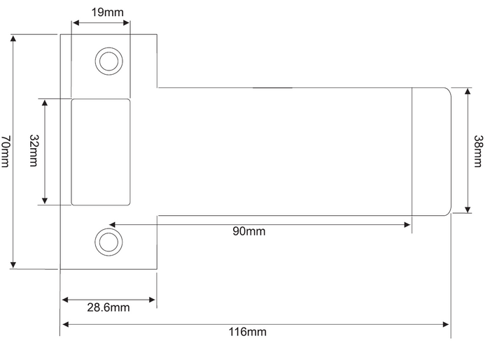 LOCKTON Art. STML60-EXT-90 Extended Mortice Lock Strike, designed to suit LOCKTON Art. SG-ML60, SG-ML95 and other Mortice Locks (see RELATED PRODUCTS).