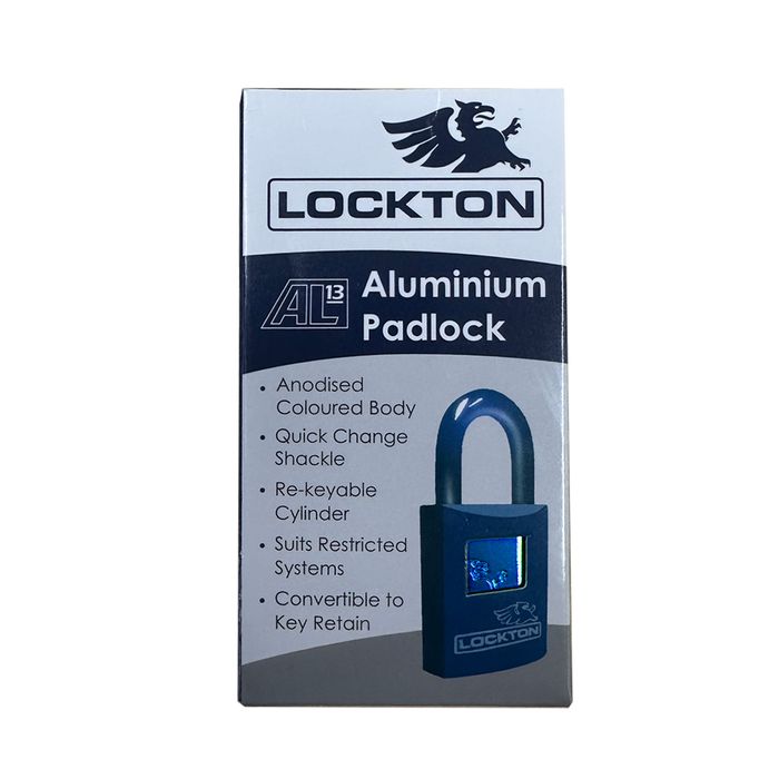 The LOCKTON Art. 500-AL/40-BL-KD-ENGR 40mm Keyed to Differ Padlock.