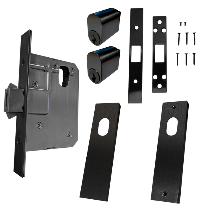 60mm SLIDING Mortice Lock KIT4 (DOUBLE CYL.) - Inc. Lock, Furniture & Cylinders *Matte Black*