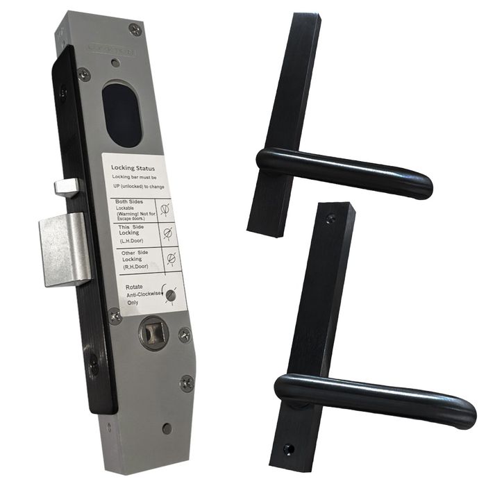 23mm Mortice Lock KIT3 (PASSAGE) - Inc. Lock & Furniture *Matte Black*