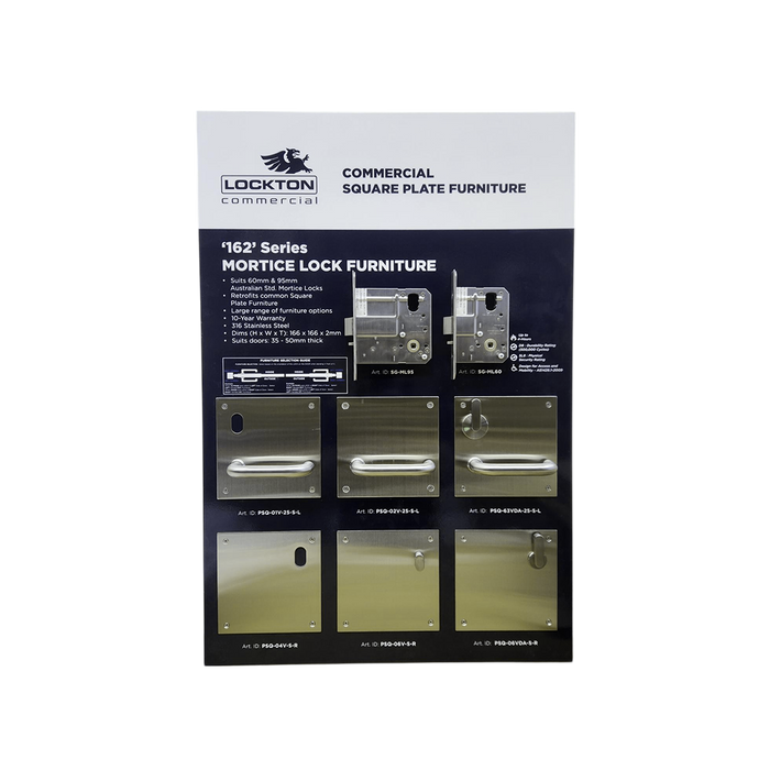 LOCKTON Display Board showcasing the LOCKTON 162 Series Square Plate Furniture Product Range.