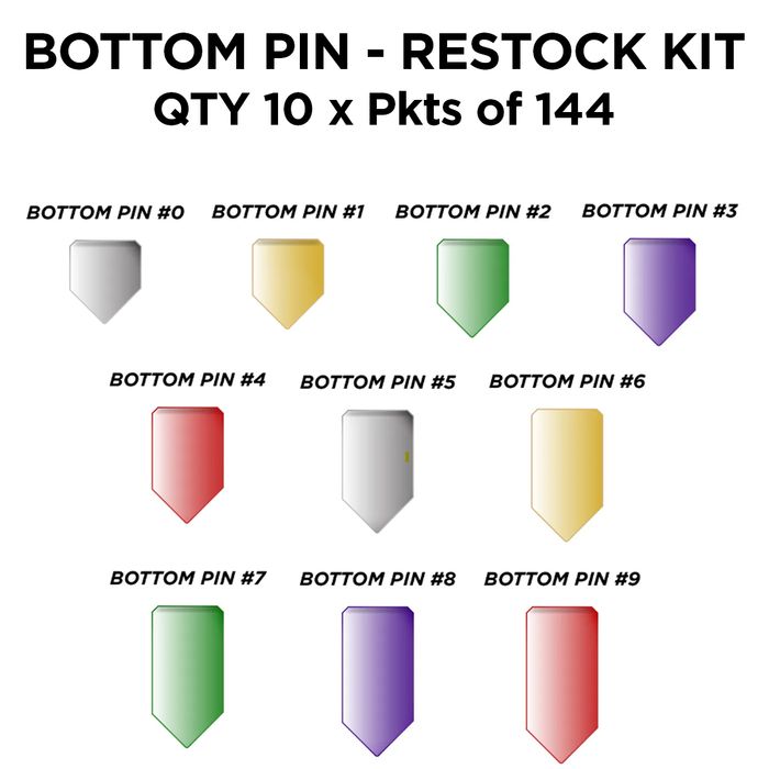 'BOTTOM PIN RESTOCK KIT' - BOTT PIN PKTS #0 thru #9 (QTY 10 x Pkts of 144)