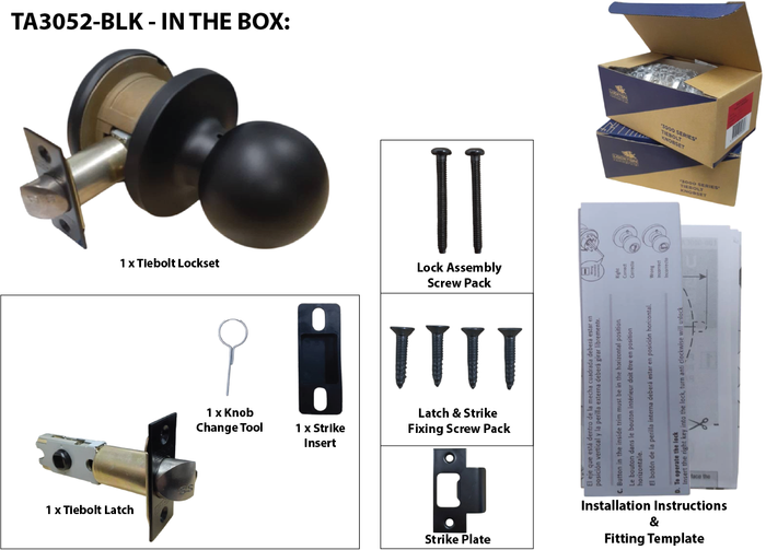 The LOCKTON Art. TA3052-BLK 'Latching Half Set' Tiebolt Knobset w/ Matte Black Finish.