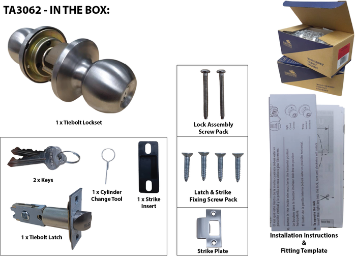 '3000 Series' Tiebolt KNOBSET - STOREROOM (75mm Rose / 60-70mm BSet) *Satin Stainless Steel*