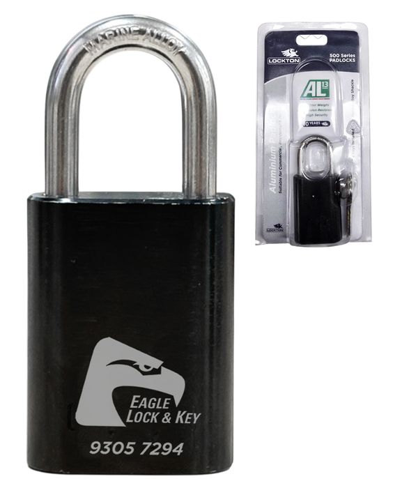 PADLOCK '500 AL13' 40mm (BOX OF 10) - Laser Engraved *BLACK* (KD) - HANG PACK