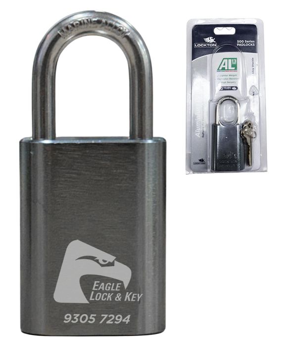 The LOCKTON Art. 500-AL/40-GG-KD-HP-ENGR 40mm Keyed to Differ Padlock. - In Hang Packaging.