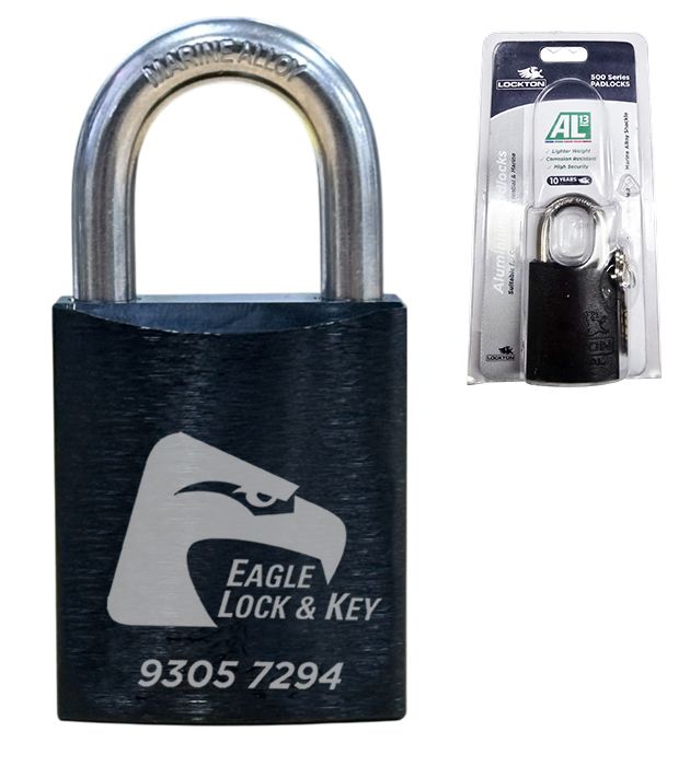 PADLOCK '500 AL13' 45mm (BOX OF 10) - Laser Engraved *BLACK* (KD) - HANG PACK