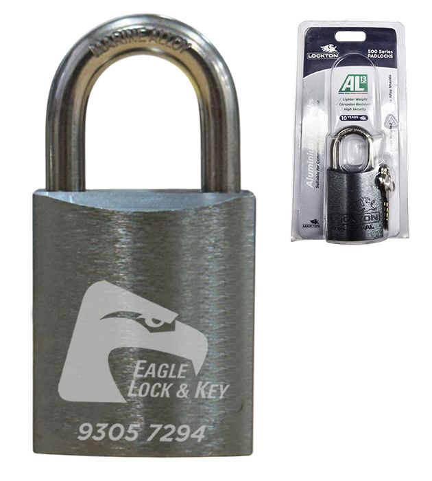 The LOCKTON Art. 500-AL/45-GG-KD-ENGR 45mm Keyed to Differ Padlock. - In Hang Packaging.
