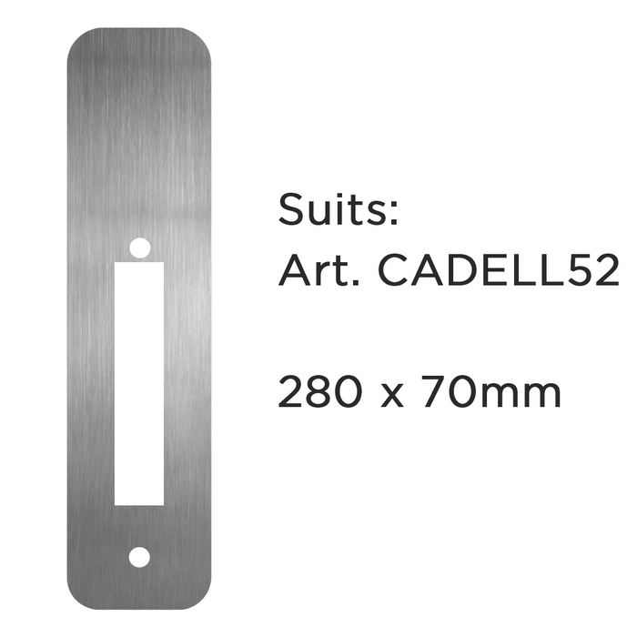 This scar plate will cover cutouts and painting lines from previous Lockset Installations that are less than 70mm wide (Fits on Fire Door).