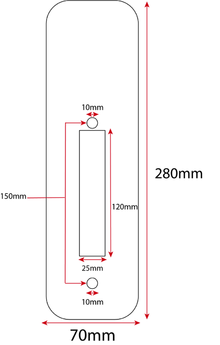 This scar plate will cover cutouts and painting lines from previous Lockset Installations that are less than 70mm wide (Fits on Fire Door).