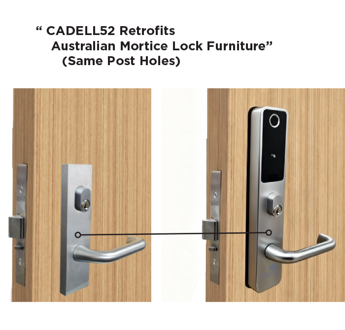 The CADELL52 is designed to effortlessly retrofit over existing Australian Mortice Lock installations.