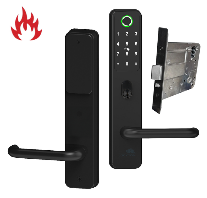 The LOCKTON Art. CADELL52-BLK-ML95 Electronic Lever Mortice Lock Kit w/ Matte Black Finish.