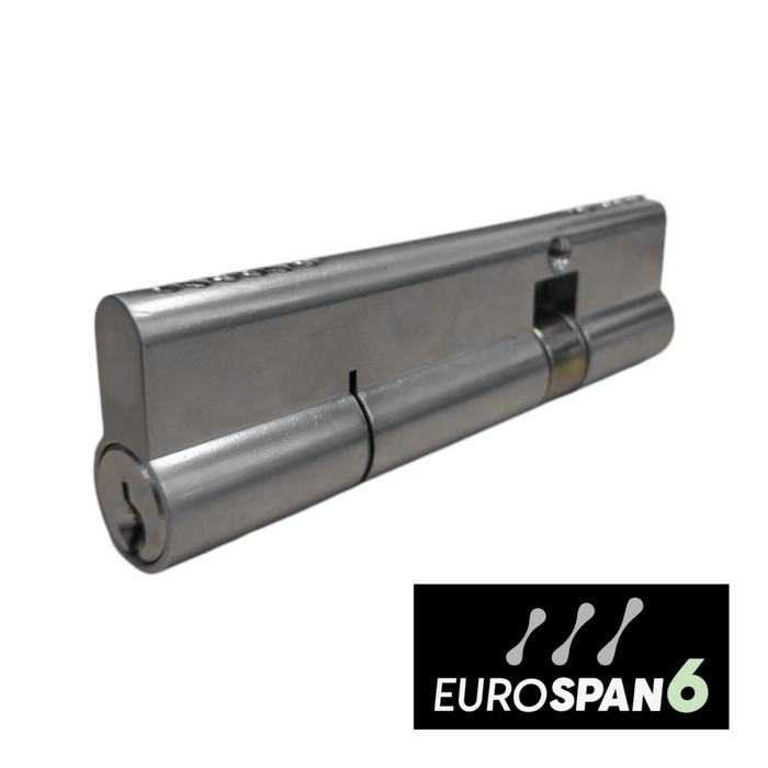 'EUROSPAN-6' CYLINDER *OFFSET* (35mm/75mm) DBL EURO FIXED 6-Pin *Satin Chrome* (KD)