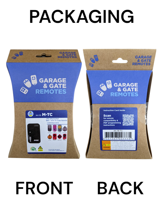 JMA M-TC TRI-CODE Universal remote, is a compact, durable remote that is compatible with ATA Triocode and B&D Tri-Tran Garage & Gate Motors.